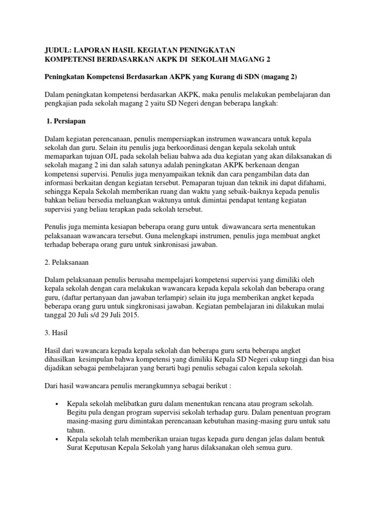Contoh Laporan Hasil Akpk Di Sekolah Magang Pdf